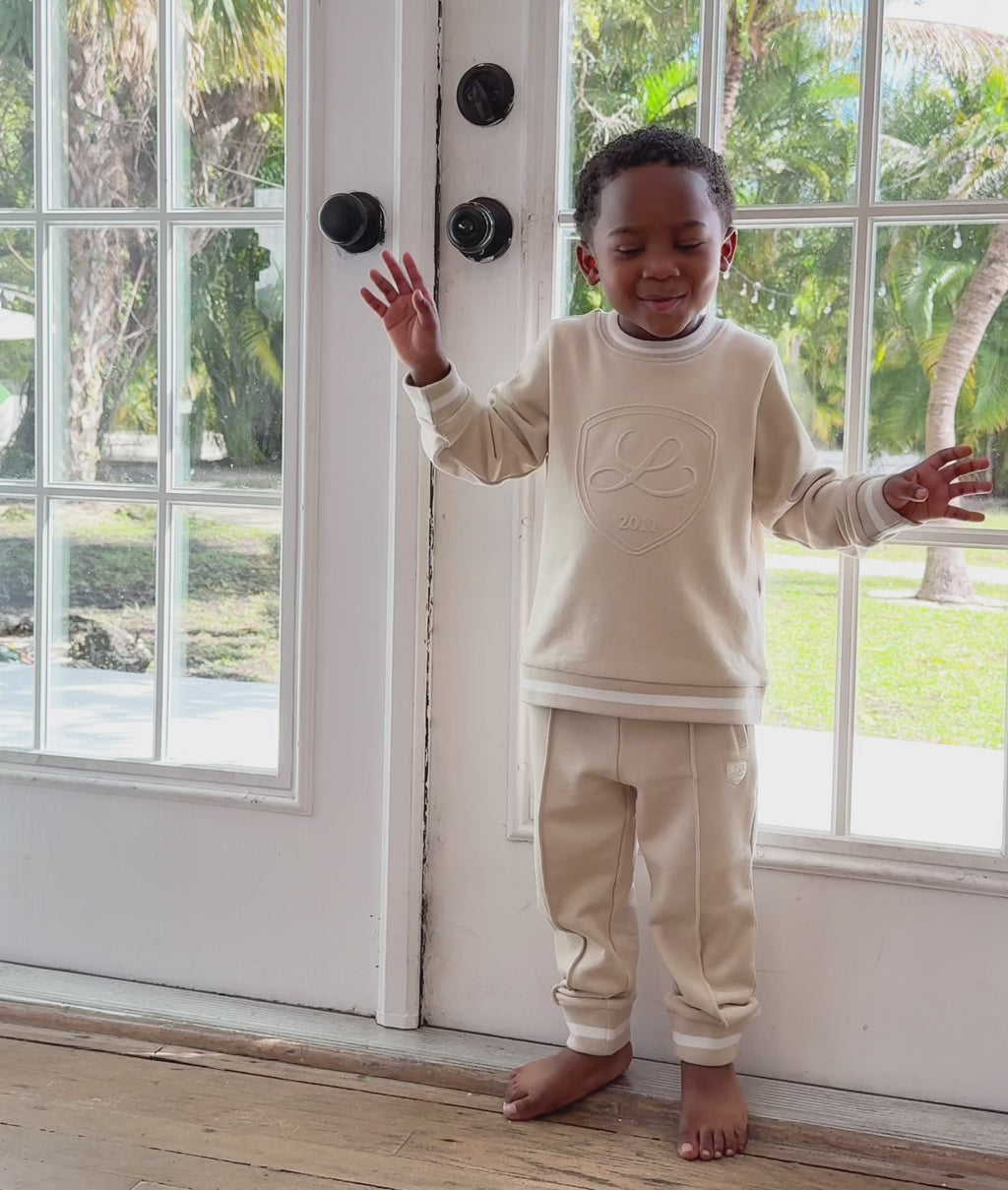 Mit unserem Varsity-Sweatshirt aus einer weichen, atmungsaktiven Baumwollmischung ist es den ganzen Tag über bequem. Dieses beigefarbene Modell hat eine lockere Passform, weiße Details und ein verspieltes, geprägtes Logo auf der Vorderseite. Vervollständigen Sie den Look mit unserer passenden Jogginghose für ein perfekt abgestimmtes Outfit.