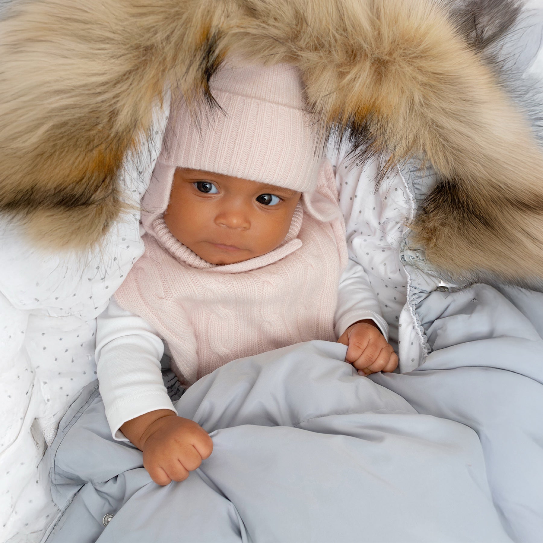 En säsong fylld av mjukhet. Upptäck borstade stickade plagg, långfibrig bomull och gosiga lager som värmer små kinder hela vintern.